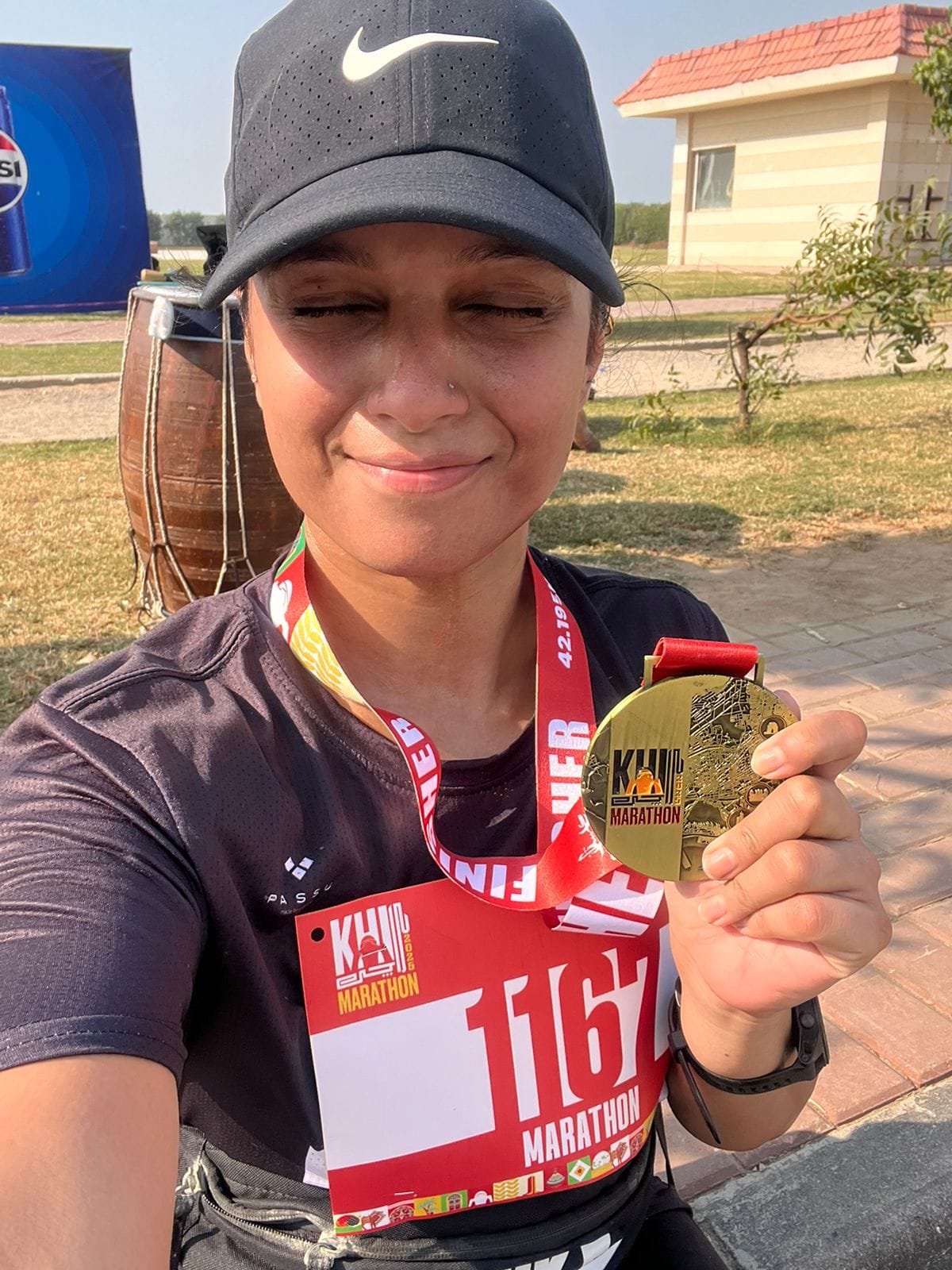 Her grit didn’t go unnoticed in Karachi’s growing running community. Alycia joined a local running club where she found encouragement — and a bit of peer pressure — to take things to the next level. “Running a marathon was never a goal, lol,” she says, laughing at her own honesty. “I joined a running club and they all pushed me to run a marathon. I didn’t get into Tokyo, so I did Karachi.” With that, she committed to 42.2 kilometers — a distance that even seasoned athletes approach with caution.